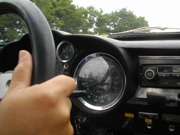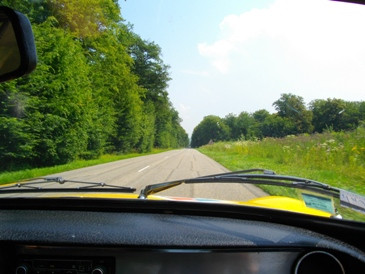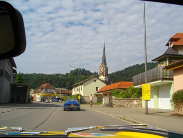ラリー形式のドライブ、こんな道を100キロオーバーで走る、一応ルートマップは有るが、ひたすらデニーの後を追う。村の中はユックリ。