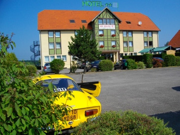 2009.07.01オットマーシェイム(Ottmarsheim)のALSホテルに泊まる。黄色いアルピーヌを僕ら専用に用意してくれた、ドアにネームタグが付いていた