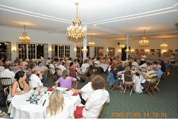 シュルンプコレクションのパーティ会場で。左窓のすぐそこにブガッティ・ロワイヤルが鎮座している