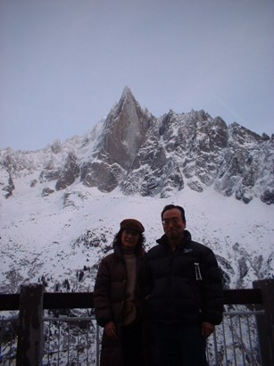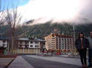 スイスのマルティーニ経由で戻ってくるドライブに誘ってくれた。モンブラントンネルの前で、入ったとたん”モンテビアンコ”。