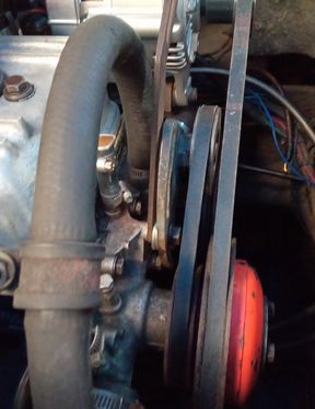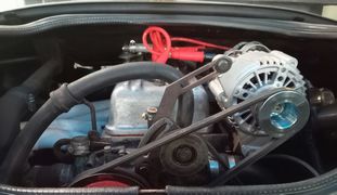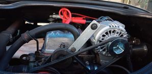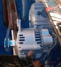 2024.01.08 アルピーヌのオルタネーターをMINI用ICレギュレーター付きに変更。プーリーが程よく飛び出している、仮のステーをアルミ板で作る、チャージランプも応答する。
