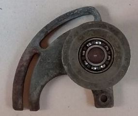 2024.01.27 アルピーヌのベルトテンショナー 今まで気が付かなかったが形がチョット違う R17用か 取付方法も変、ベアリングのグリース充填ついでに本来の取り付け位置に変更。