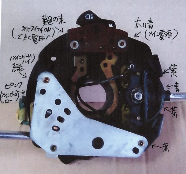 2025.02.19 いつからかアルピーヌのハイビームが点かない、まあ車検の時ぐらいしか点灯させないから。パッシングは点くので配線は問題ない、コラムスイッチを分解
