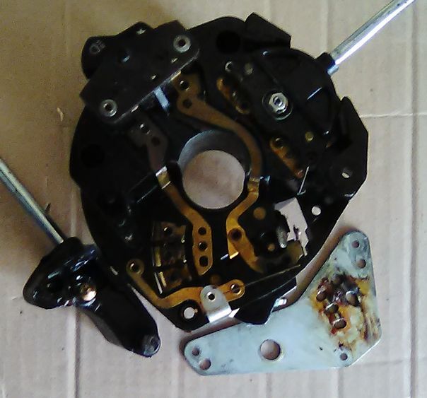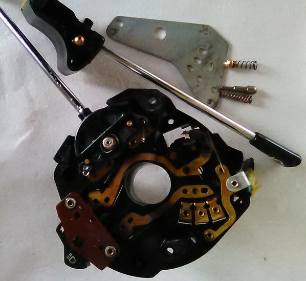 接点間を移動するコマが削れて大きな段がある、ヤスリでそれツぽく修正 固まったグリスを掃除して再組立て、真鍮でカシメの箇所はアルミリベットで代用。
