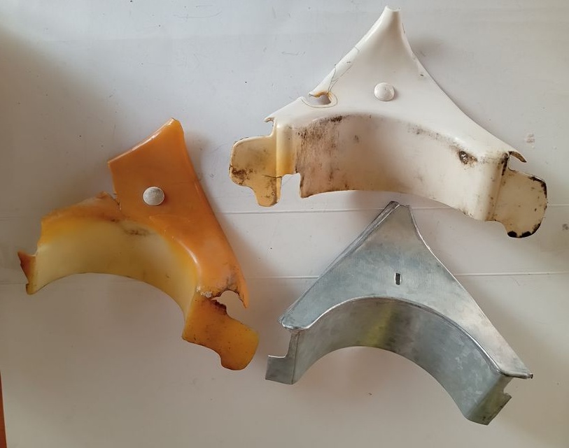 2025.04.14 リトルホンダの樹脂部品、経年変化でボロボロになる、この部品(フレームパッチ)をブリキで作る。SFでも最後のほうではパリパリ割れるリプロが出てきたな。
