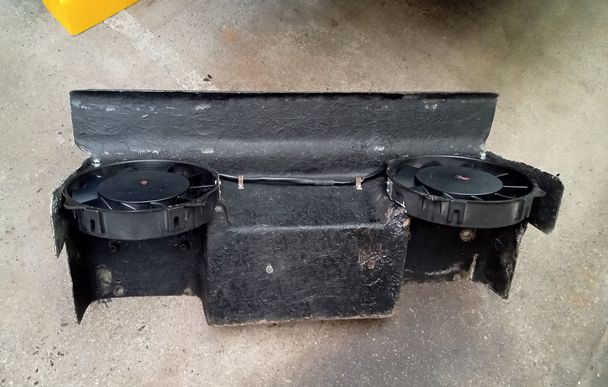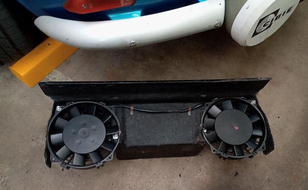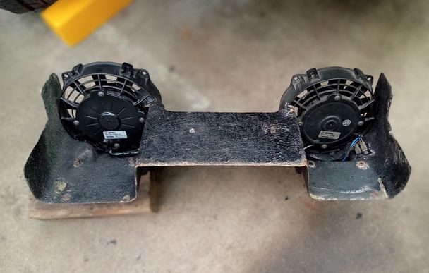 2025.06.11 アルピーヌ渋滞時の甘ったるい匂いから逃げるべくラジエターファンを強化。お安く見つけたSPALの大きいのにする。以前の小さなバイク用と比べるとブンブン回る。