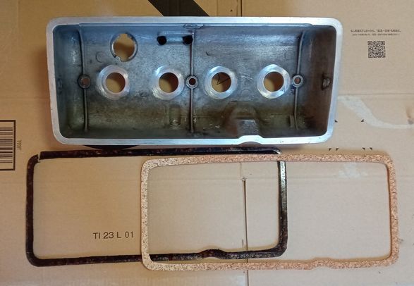 カバーのボルトはあんまりきつく締めたくない、デストリビューターが当たる部分の逃げを皆どうしているのかな、コルク製にはこの凹みの物があったような。