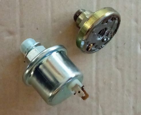 古いオイルプレッシャーセンサーが外せない ケースをバラしてタガネ一発、新しいのは足が長くて作業がしやすそう。