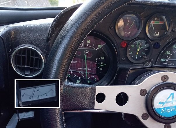 2023.11.24 アルピーヌとスピットでご先祖様詣。動かなかった電圧計、バラして可動部分を洗ってやったのに、ちょっとしか動かない。